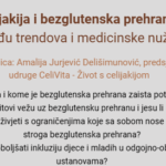 https://youtu.be/yn7V8fTKDVs Inicijativa “Sigurno bez glutena” imala je za cilj napraviti edukativan video u kojem ćemo osobama na strogoj bezglutenskoj prehrani objasniti kako odabrati sigurne proizvode bez glutena u trgovini. To nije baš jednostavno zato što ne nose svi sigurni proizvodi oznaku bez glutena niti svi proizvodi koji nisu sigurni za oboljele nose oznaku da sadrže gluten ili potencijalne tragove glutena. Iz prethodne rečenice je jasno kako tu poruku nije lako ispričati pa smo je zato odlučili pokazati. Glumci su bili sami studenti s celijakijom, članovi CeliVitine sekcije mladih. U izradi edukativnog videa “Sigurno bez glutena” nas je podržao naš partner Lidl Hrvatska. Video je premijerno prikazan 27.5.2025. na panel raspravi Studentska bezglutenska prehrana koju smo organizirali kako bismo progovorili o problemu izostanka bezglutenske ponude u studentskim menzama, posljedicama koje to ima na studente i potencijalnim rješenjima. Cilj projekta je bio napraviti edukativan video u kojem ćemo osobama na strogoj bezglutenskoj prehrani objasniti kako odabrati sigurne proizvode bez glutena u trgovini. To nije baš jednostavno zato što ne nose svi sigurni proizvodi oznaku bez glutena niti svi proizvodi koji nisu sigurni za oboljele nose oznaku da sadrže gluten ili potencijalne tragove glutena. Iz prethodne rečenice je jasno kako tu poruku nije lako ispričati pa smo je zato odlučili pokazati. Glumci su bili sami studenti s celijakijom, članovi CeliVitine sekcije mladih Lucija Bažant, Iva Lovrić, Marko Herout i blagajnica Magdalena Dalić. U izradi edukativnog videa “Sigurno bez glutena” nas je podržao naš partner Lidl Hrvatska. Video je premijerno prikazan na panel raspravi Studentska bezglutenska prehrana koju smo organizirali povodom mjeseca svjesnosti o celijakiji kako bismo progovorili o problemu izostanka bezglutenske ponude u studentskim menzama, posljedicama koje to ima na studente i potencijalnim rješenjima. Osim ovdje, video se može pronaći i na CeliVitinom Youtube kanalu te na Lidlovim službenim stranicama.